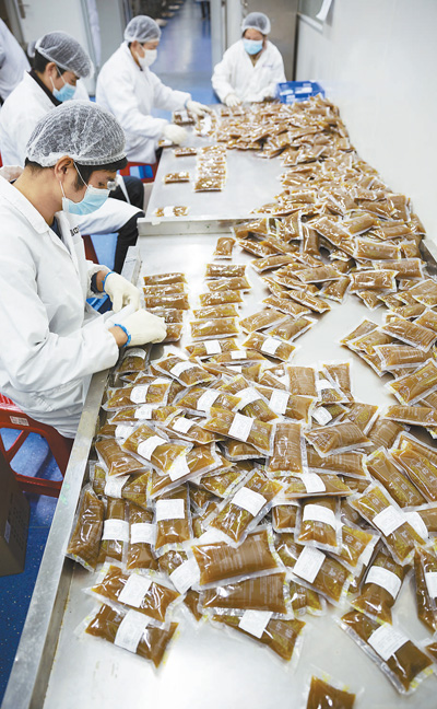 3月2日,湖北武汉一家中药公司,工人正在为灌装好的中药贴上标签。据悉,该公司在疫情期间,按照国家卫生健康委办公厅和国家中医药管理局办公室联合印发的《新型冠状病毒肺炎诊疗方案(试行第六版)》中推荐的药方,为武汉市7家医院、10个方舱医院等单位生产、煎煮和配送中药汤剂。 本报记者 张武军摄