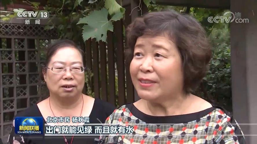 北京市民 杨秋霞:出门就能见绿,而且就有水,这个真的是(好),你看我每天早晨起来就遛弯,确实是生活(上)给我们提供了方便。