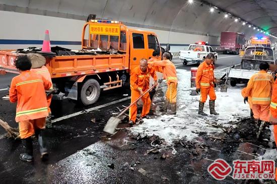 突发!G324线漳州花都2号隧道内一小货车自燃