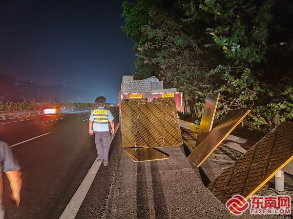 30多块木板掉落高速 莆田高速执法人员快速处置