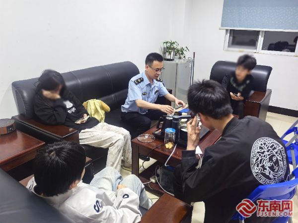执法人员安抚孩子们。宁德高速执法支队供图 执法人员立即启动应急响应,一方面迅速报警并联系拖车施救部门,同时快速摆放反光锥桶,设置安全警示标志;另一方面将4名未成年人安全转移至福安北中队接待室。
