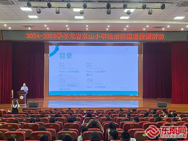 东南网5月30日讯(通讯员 蔡佳俊 廖彦铭)“同学们,要是有人天天给你起难听的外号,还拉着一群人不理你,这算不算校园霸凌?”“算,这也是霸凌!”5月22日,龙岩市东山小学报告厅里,闽西监狱民警蔡佳俊带来的“向校园霸凌说‘不’”主题法治课,让五年级400余名师生直呼“涨知识”。这场由闽西监狱精心策划的沉浸式法治课堂,用生动有趣的教学方式,为同学们筑起一道反霸凌“防护墙”。