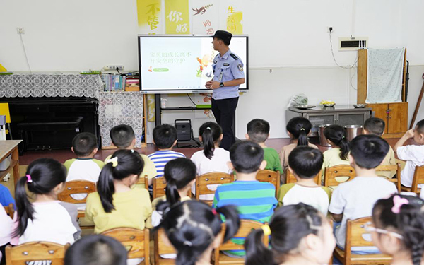 活动中,民警化身为亲切的“法治老师”。他们通过讲述真实发生的案例,为孩子们普及学前教育法。同时详细介绍骗子的常用拐骗手段,并传授使用防拐骗方法,还普及了交通安全知识。民警借助生动的动画短片和趣味问答引导幼儿理解“遵守规则”“保护自己”的重要性。在防拐演练环节,民警播放动画片《不跟陌生人走》,并教孩子们传唱朗朗上口的防拐儿歌,帮助孩子们识别骗术,牢记求助方法。