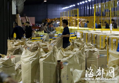 昨晚福州申通快递仓库,大批“双11”货物运到