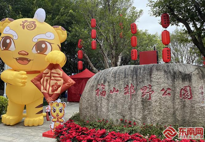 福山郊野公园处处洋溢着春节的“福”气。东南网记者 陈楠摄 东南网1月26日讯(本网记者 陈楠)今天下午,2022年“虎年福见 有福之州:迎虎年春节 过幸福生活”福州市主会场启动仪式在福山郊野公园福榕园举行。 福山郊野公园被满满的“福”元素装扮一新。在“福山舞墨”“福水留香”“福道逸情”“福泉映画”“福年有礼”等各个互动区域,既有书法家现场写春联送“福”,也能体验打印个人专属“福”字帖、制作“虎年福见”文创T恤、布袋,还能看到琳琅满目的“福”文化主题文创产品,吸引众多市民群众前来“打卡”。