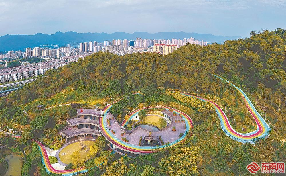福州福山郊野公园彩虹步道上,市民健步休闲,好不惬意。2021年10月下旬,福山郊野公园的步道全线贯通,总长达20公里,把沿线三座山脉的24个重要景观节点串联起来,让市民走出家门就进森林,把山林美景看个够。福建日报记者 游庆辉 摄