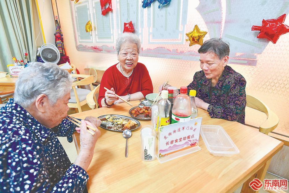 老人在军门社区长者食堂内用餐。福州建成430多处长者食堂、1.8万个餐位,托起老年人幸福晚年。福建日报记者 游庆辉 摄