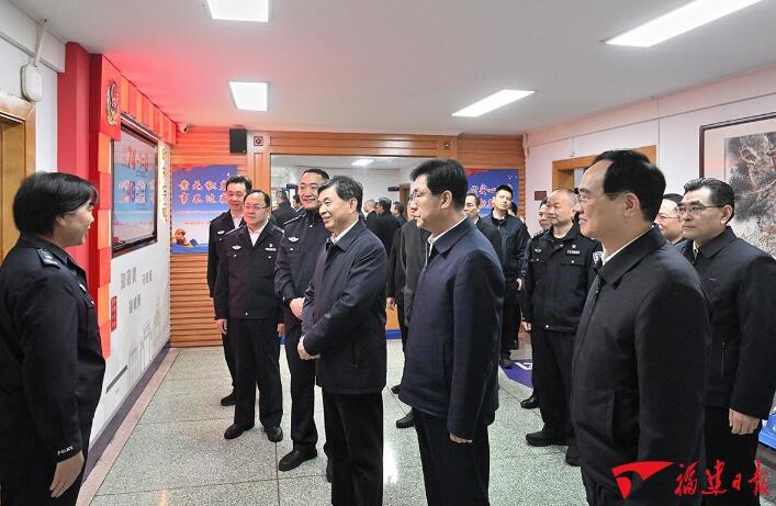 鼓楼区东街派出所位于市中心,辖区内商户众多、人流量大,肩负着维护社会安定、保障人民安宁的重要职责。周祖翼、赵龙来到派出所,与干警们一一握手,详细了解创建枫桥式公安派出所做法和窗口服务、值勤值守等情况。周祖翼说,群众利益无小事。春节期间,基层一线干警任务更重。大家要恪尽职守、奋战一线,筑起安全屏障,守护好万家平安幸福和社会祥和安宁。要认真做好新时代基层公安派出所工作,坚持和发展“枫桥经验”,强化责任担当,全面从严治警,创新网格化社会治理模式,把矛盾纠纷化解在基层,不断增强人民群众获得感幸福感安全感。