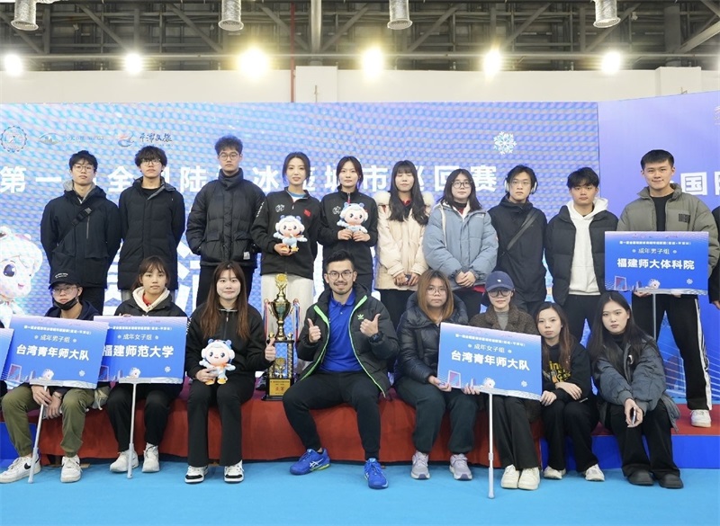 台湾青年张钊瑞(前排左四)组织2支台湾队参加第一届全国陆地冰壶城市巡回赛。主办方 供图 东南网3月6日报道(记者 卢金福)3月2日至3日,第一届全国陆地冰壶城市巡回赛(福建·平潭站)在平潭举办,这是中国首个由南方沿海城市作为举办地的高规格全国性陆地冰壶体育赛事。在福建任教的台湾青年张钊瑞组织了2支台湾队10名学生前来参赛。2020年获得北京体育大学体育经济与产业专业博士学位后,张钊瑞来到福州深耕体育事业,目前在福建师范大学体育科学学院任教,并致力于推动两岸体育交流。 此次全国陆地冰壶城市巡回赛设小学组、中学组、成人组三个组别,吸引来自全国64支队伍、300余名冰雪爱好者参赛。在赛场上,记者看到不少台湾学生的身影,他们和大陆的青年同台竞技,互相交流。 张钊瑞曾在北京体验过冰壶运动,他告诉记者,对于不少台湾学生来说,之前连雪都没有看过,通过参加陆地冰壶运动可以感受冰雪运动的魅力,培养起对冰雪运动项目的兴趣,将来能在大陆各地进行交流。 “台湾主要是用地壶球,一种带轮子的壶球,没有办法滑,也没有正规的冰壶馆,而这次来的台湾学生,几乎都是00后,他们可以收获更多新奇的体验,同时更好地跟大陆青年多交流。”张钊瑞说。 来自台湾台中的张钊瑞是一名90后,出生在体育世家,他的父亲是台湾逢甲大学的教授及手球教练,母亲是马拉松运动员。 小时候,张钊瑞就经常跟随父亲来大陆参加各种体育交流比赛。2002年,还在读小学的张钊瑞第一次跟随父亲从台湾来到福建参加手球交流活动,闽台之间相近的语言、文化和风俗,让他感到亲切。2016年,张钊瑞到大陆谋求发展,游历各地,最终选择在福建就业,还被某健身俱乐部聘为门店总经理。其间,他积极联系并促进台湾多所高校招募优秀大学实习生来闽实习与就业。