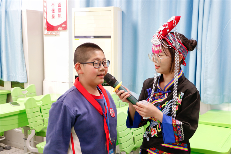 活动现场,鲜艳多彩的少数民族服饰引起了小学生们的极大兴趣。5位少数民族学生代表以传承和弘扬中华民族共同体意识为己任,通过生动有趣的讲解和展示,让小学生们深入了解了不同民族的特色文化。