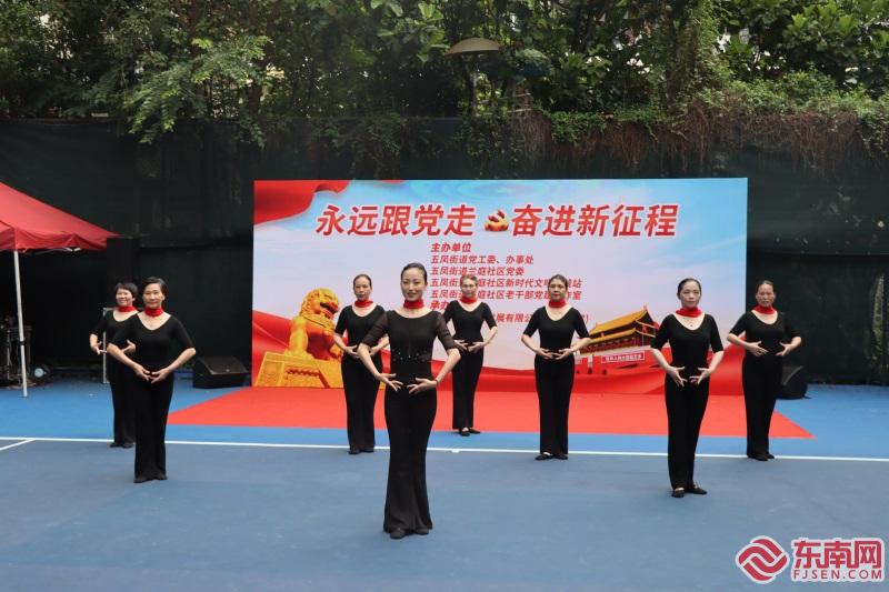 东南网7月1日讯(本网记者 卢金福 文/图)今日是中国共产党成立103周年,福建全省各地组织开展内容丰富、形式多样的庆祝活动,重温党的光荣历史,汲取奋进力量,激励各级党组织和广大党员弘扬伟大建党精神。今日上午,记者在福州市五凤街道兰庭社区巴黎之春小区看到,小区网球场上举办了一场文艺演出,为党的生日献礼,同时还为4名老党员颁发“光荣在党50年”纪念章。