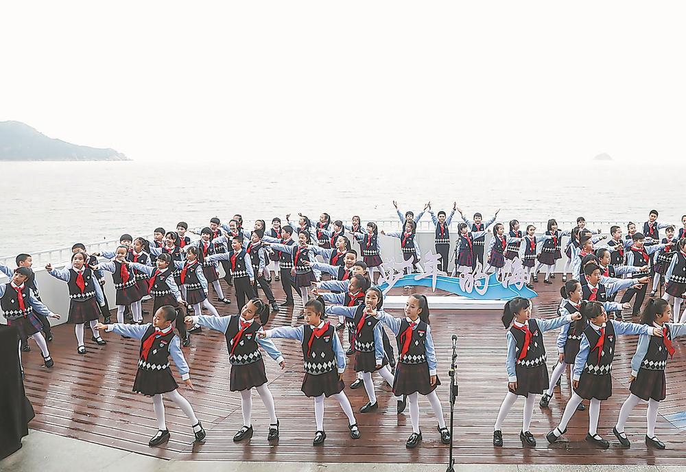2022年11月23日,在首届中国·霞浦海洋诗会暨新时代海洋诗歌论坛开幕式上,百名少年献上童声小合唱《少年的海》。(资料图片)