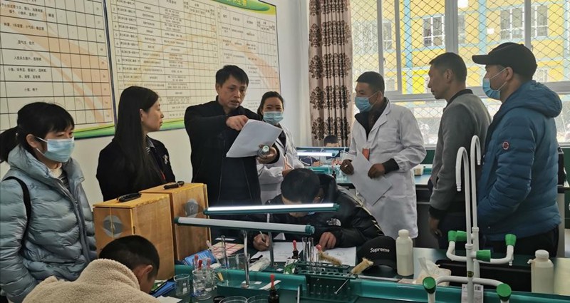 王碧峰在左贡县中学督导指导实验教学。受访者供图