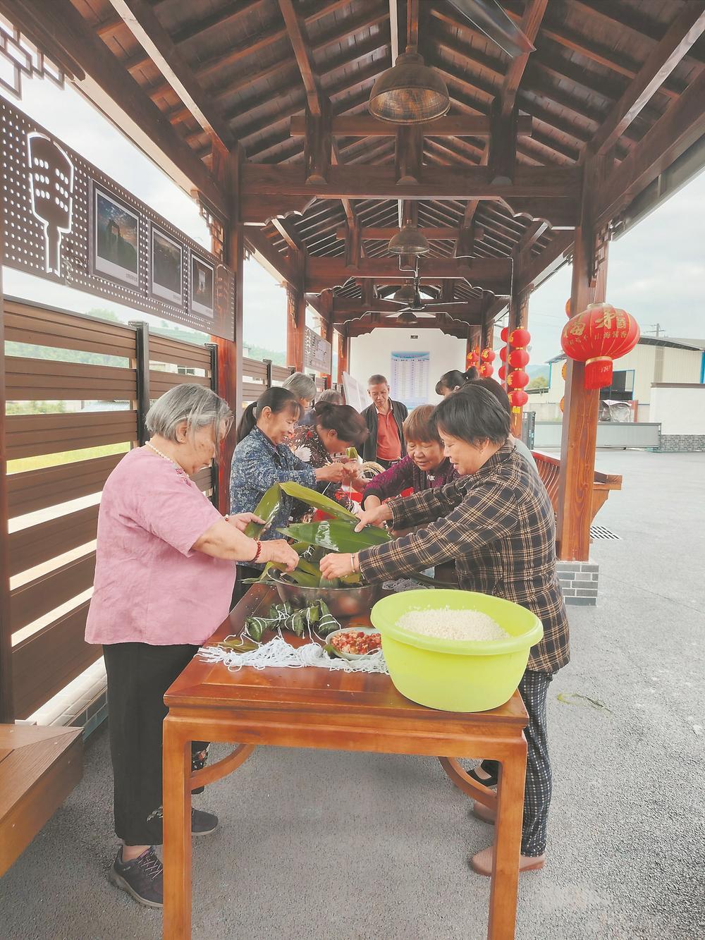 建瓯市小桥镇“幸福里”社区的老人正在开展端午包粽子活动。 (资料图片)