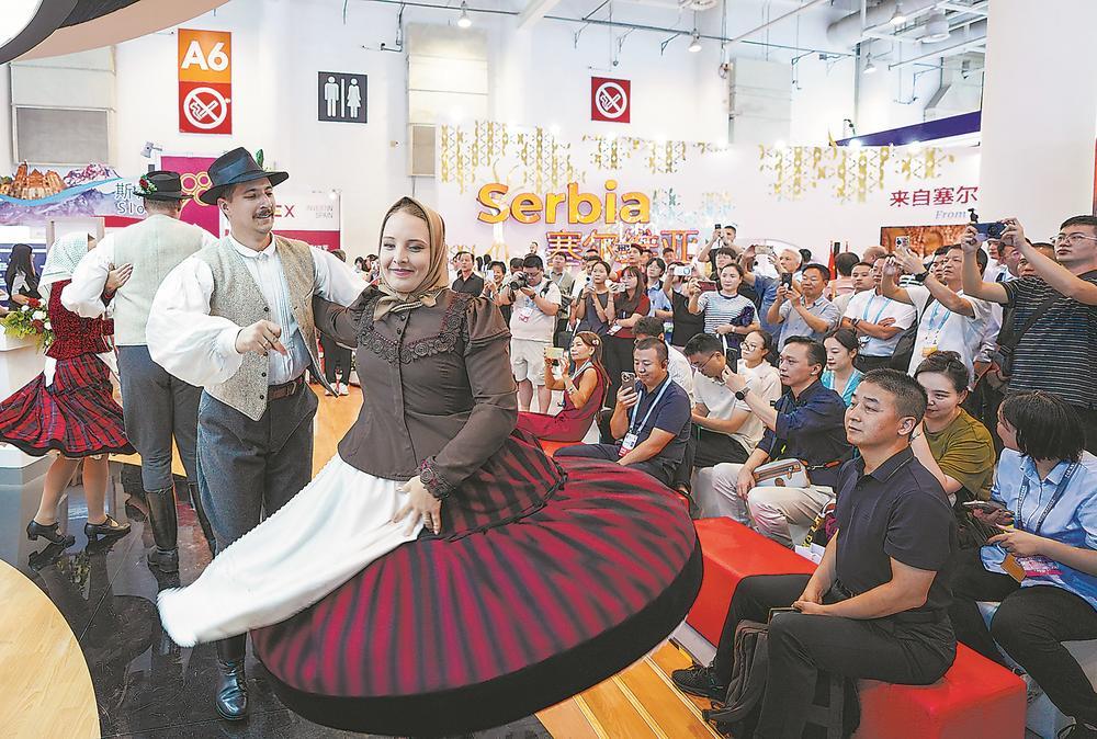 在匈牙利国家馆举行的特色舞蹈表演吸引了大批观众。福建日报记者 林梓健 实习生 马志远 摄