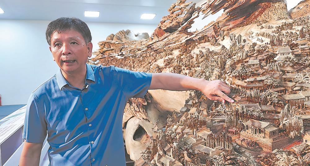 郑春辉介绍,木雕《京杭大运河》以运河为载体,既呈现水利设施、文化遗产点等核心元素,又串联两岸城市的自然风光与人文景观,他还将中国画、油画、雕塑、连环画等多元艺术表现手法融入其中。