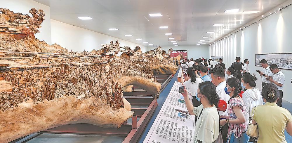 国庆中秋双节期间,因为《京杭大运河》的魅力,莆田市美术馆内人潮涌动,众多市民与游客慕名前来打卡。“全家人一起来的,不光孩子长了见识,连大人也大开眼界。”正在观展的市民陈雷说,大型木雕《京杭大运河》不仅是一幅立体山水长卷,更是莆田木雕艺人工匠精神的生动写照。