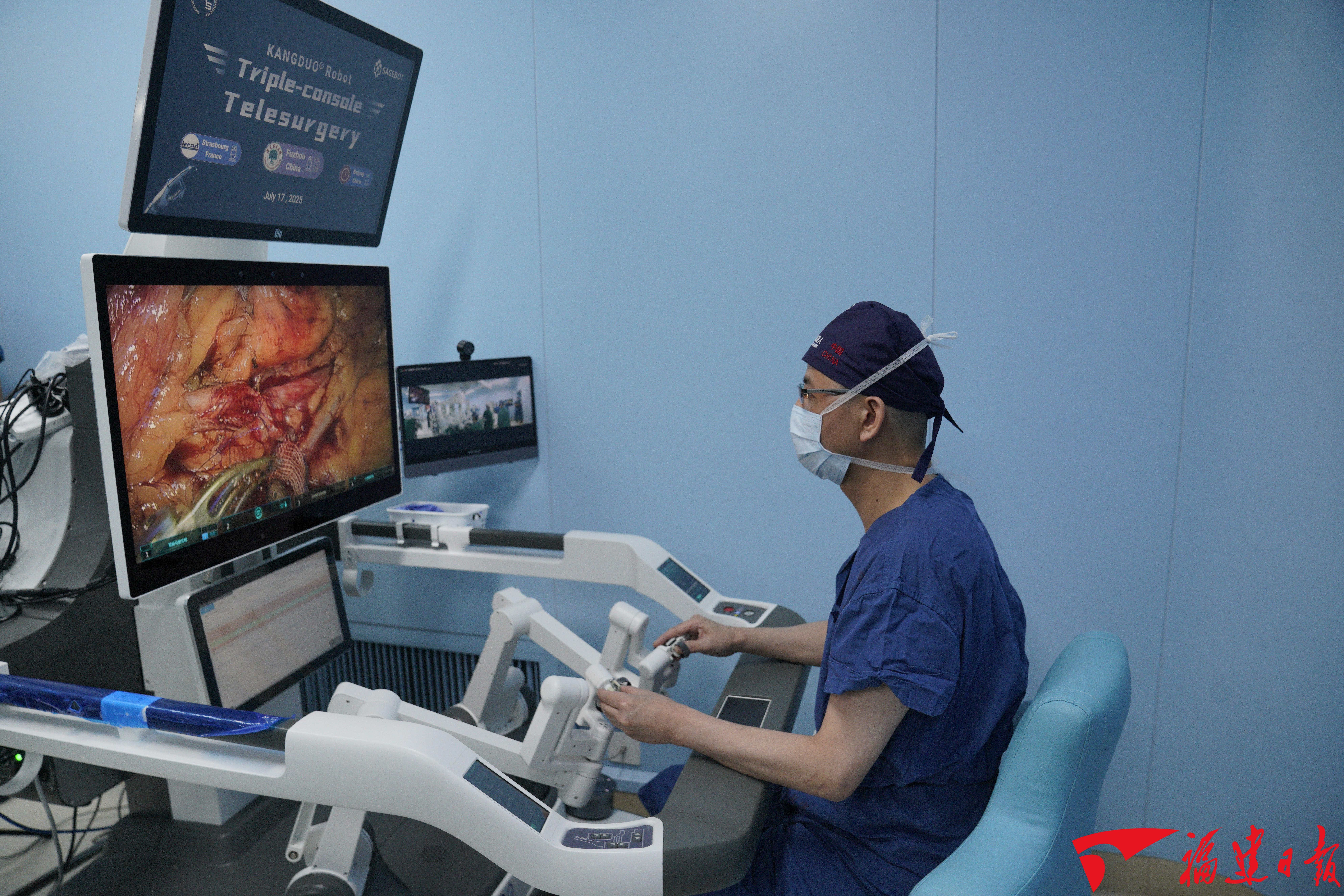 省立医院泌尿外科主任叶烈夫操作机器人进行远程手术。