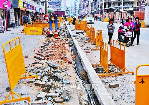 福州新闻网讯 本月30日,南街改造开始封路施工。为了分流南街的车流量,鼓楼区建设部门正在加紧东泰路拓宽建设,本月底主车道将通车,人行道的施工要到下月中旬才能完工。 19日,记者在现场看到,东泰路人行道上的47棵麻楝树和1棵白玉兰已全部移植到三环路上。靠近津泰路这头、大觉寺对面,以及靠近东街这头、鼓二小对面,人行道已后退,主车道已拓宽,工人们正在铺砌人行道上的透水砖。 东泰路起于东街,止于津泰路,全长500多米,原有路面宽7米,只有单向的机动车道,没有非机动车道,人行道宽度不等,有的地方甚至没有。改造后,道路规划红线扩大至18米,为双向两车道。 (福州晚报首席记者 綦芬/文 记者 张人峰/摄) |