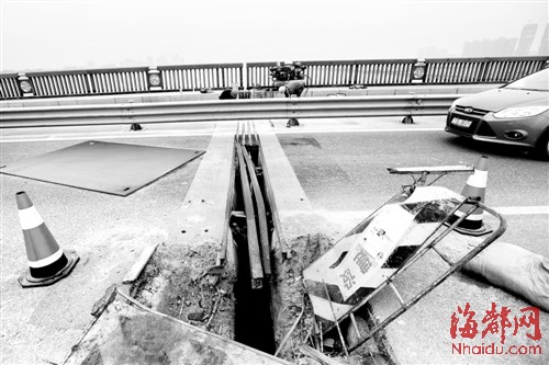 半年前修补的伸缩缝又现断裂,浦上大桥将于清明节后动工修复
