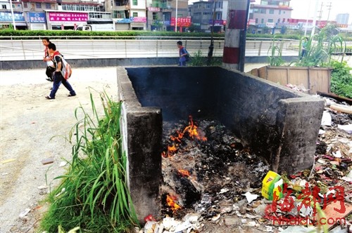 福峡路一所小学附近常有人烧垃圾 垃圾池作焚烧炉