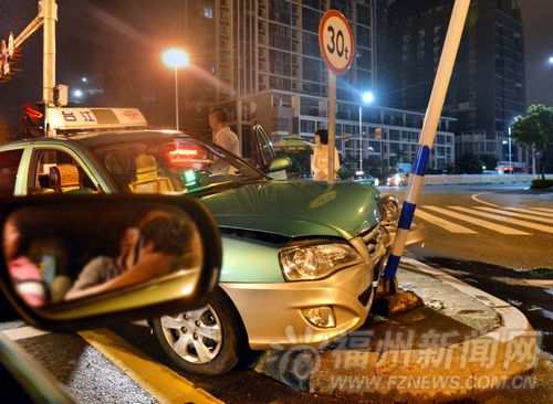 的士凌晨冲上安全岛 警方称是司机疲劳驾驶所致