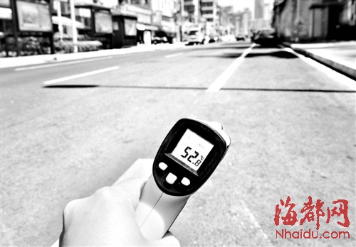 在没有树荫遮挡的路面,地表温度超过五十摄氏度 东南网6月26日讯(海峡都市报记者 王林成 张超晖 文/图)“今年2月底,原有的行道树被移走,整条东泰路至今还是光秃秃的。”昨日,本报推出“盛夏,寻找补绿点”系列策划后,几位市民都反映了福州东泰路“缺绿”4个月的问题。 记者实地体验发现,由于缺少行道树,东泰路鼓二小门前的路段,比邻近的东街绿荫下,地表温度足足高了20多摄氏度。对此,鼓楼区园林局表示,预计7月底之前,东泰路将种下约4米高的樟树。 大树被移空留树池 “之前被移走的行道树至少都有五六米高,真希望这些空树池能尽快种上树。”东泰路上一小吃店老板林先生表示。 住在附近的市民陈女士表示,今年2月底因路面拓宽,东泰路原来茂密的行道树被移走,当时园林部门承诺,将会重新种植行道树。“可4个月过去了,这个承诺一直没兑现。现在东泰路是宽了,却从林荫道变成了暴晒路段。”一位鼓二小学生的家长说,希望东泰路能尽快种上树,新学期开始后,让孩子不再暴晒。 地表温度高出20多摄氏度 昨天下午2时许,正值福州市区气温飙高之时,记者来到了东泰路。在整条东泰路上,一共有73个空置的树池,骄阳直接射在地面上,腾起阵阵热气。人行道上的人不多,市民撑着阳伞,快步疾走。 |