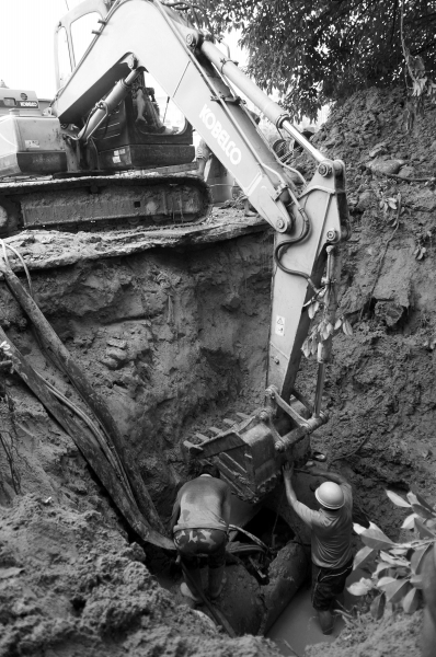 野蛮施工挖断上街主供水管 学生无奈到市区开房洗澡