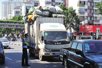 福州整治货车闯禁行 货车没通行证上二环高架桥被罚