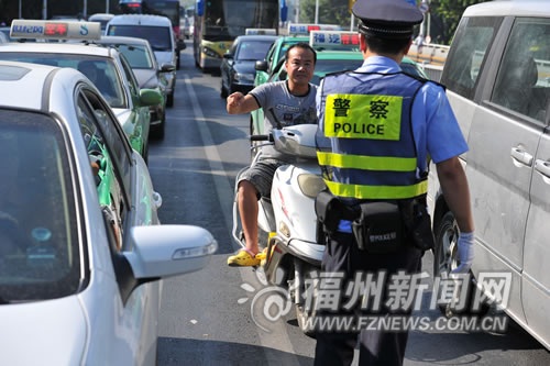 在三县洲大桥北桥头,这辆骑行在机动车道上的电动车被警察拦下 福州新闻网讯 8日上午,市交巡警支队组织台江交巡警大队和苍霞派出所,在三县洲大桥设立执勤点,严查严处驶上过江大桥的闯禁行非机动车、摩托车和货车,一小时共查处各类交通违法35起。 三县洲大桥限制摩托车、超标准电动自行车和未注册登记电动自行车通行。白马路下杭路口是仓山区通往台江的必经之路,每天有大量非机动车途经三县洲大桥,其中就有不少超标电动车。 记者8日上午8时到达白马路下杭路口。一名龙岩籍男子骑着超标电动车从三县洲大桥的非机动车道下来。民警将其拦下后,告知其闯禁行要罚50元。男子跳了起来,反问民警:“别人才罚20元,我怎么罚50元。” 民警解释说,非机动车未在非机动车道内行驶,罚款20元,闯禁行要罚款50元。 民警刚对该男子开完罚单,就发现一辆白色超标电动车在三县洲大桥的机动车道上飞驰。骑超标电动车的是一名女子,自称是江西人、1996年出生,后座上还载着一名女子。随后,民警以闯禁行对骑车女子处以50元罚款。 民警在下桥处整治,仓山方向驶来的超标电动车慌忙掉头。此时,仓山方向陆续驶来不少非机动车,非机动车道上因此乱成一团。 为加强市区摩托车和电动自行车通行管理,福州警方决定从4月10日起,在市区二环路(含主辅路)以内所有道路,限制摩托车和超标准电动自行车及未注册登记电动自行车通行。但在白马路下杭路口,记者还是看到一些摩托车从三县洲大桥呼啸而下。 8时24分,一男子头戴迷彩头盔,骑着一辆号码为闽AQ8391的摩托车从三县洲大桥下来,男子的头盔上还有警徽。因闯禁行,男子被民警拦下。“从这辆摩托车的号牌来看,目前只能判定它逾期未年检。”民警告诉记者,警方根据规定先扣留车辆,然后移交台江公安分局交巡警大队进一步审查。记者随后从有关方面查询得知,该号牌早已失效。 随后,警方还查处了一辆车牌号码为闽A8L147的摩托车。民警告诉记者,外地摩托车闯禁行,警方将扣车15天,然后移交有关单位进一步审查。 记者从警方了解到,在8日一个多小时的整治中,警方查纠非机动车各类交通违法行为30起,查纠摩托车闯禁行2起,查纠货车闯禁行3起。 (福州晚报记者 叶繁/文 陈暖/摄) |