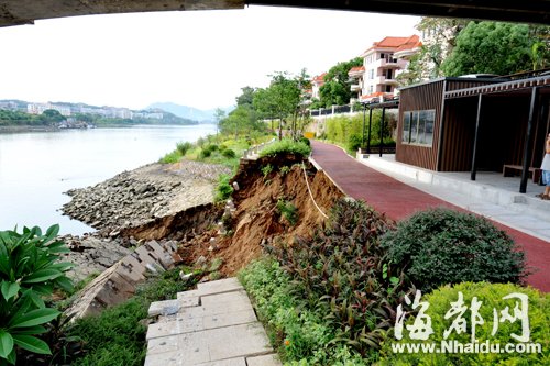 洪山桥下20米驳岸坍塌 驳岸旁是刚通行不久的北江滨绿道;鼓楼区园林局称,水文复杂,涨潮退潮冲刷引塌方 河岸旁栏杆的底座也被拉起来了 坍塌处旁,附近居民喜欢在绿道上散步 东南网8月18日讯(海峡都市报记者 陈锟 毛朝青 文/图) 关注理由:昨日下午3时50分,福州洪山桥下,近20米长的驳岸突然发生坍塌,吓坏附近居民。周围居民反映坍塌曾有预兆,前几天驳岸已经出现开裂。福州鼓楼区园林局组织相关人员现场勘察后表示,初步认为事故原因是,由于洪山桥下水文复杂,涨潮退潮冲刷,引起驳岸塌方,今天将对驳岸进行抢修加固。 记者了解到,坍塌驳岸旁的绿道,今年5月刚刚通行。有居民怀疑,驳岸坍塌和绿道建设以及景观节点改造有关,但鼓楼区园林局表示,二者没有关系,驳岸旁建设绿道只会使驳岸更坚固。 |