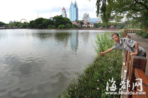 福州西湖公园一失恋少女跳湖 电工架梯救起(图)