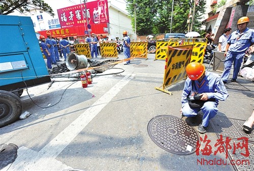 福州屏西路,窨井林立,地下管网复杂;前天就发现燃气泄漏,直到昨晚才找到漏点