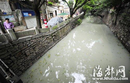 福州安泰河成“牛奶河” 疑与附近地铁施工有关