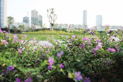 岸边的公园已经初具规模