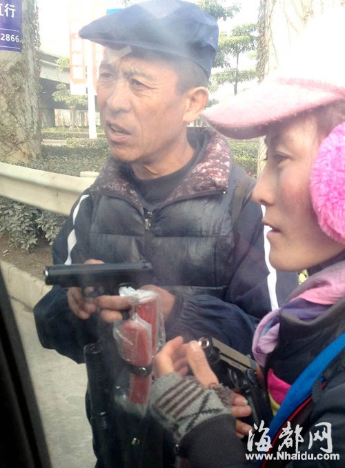 永丰互通立交桥下有人在卖枪和匕首 东南网12月29日讯(海峡都市报记者 施建华 林丹 文/图) “高架桥下的路边,竟有人公开贩卖枪支和管制刀具!”福州的阮先生昨日拨打本报热线称,在福州三环路永丰互通附近,有人在兜售危险枪支和刀具。 昨日下午,记者来到永丰互通桥下时,看到有三人站在桥下的环岛处,手上挂着几把刀具在路边兜售,其中一名男子手上还拿着一把手枪。看到有车子路过,几人便挥舞手上的“武器”。 记者佯装购买,上前咨询,一名中年男子和一名女子迅速围了上来,他们都操着外地口音。男子首先拿出手上拿的一把手枪递上前来,开价280元,并称是金属的仿真枪,枪支可以放入钢珠,射程达60米,打鸟、打野兽都没问题。 见记者对枪不满意,旁边的女子也凑了上来,掏出了一把型号更大的手枪,介绍说,这把手枪也可以打钢珠,射程可达120米,但是价格比较贵,需要1000多元。 除了售卖“手枪”外,这些小摊上售卖的刀具也是各式各样一应俱全,记者看到,其中大部分为超过20厘米的管制刀具,开价从80元到100多元不等。 根据《中华人民共和国枪支管理法》相关规定,制造、销售仿真枪的,由公安机关对个人或者单位负有直接责任的主管人员和其他直接责任人员处警告或者15日以下拘留;构成犯罪的,依法追究刑事责任。 |