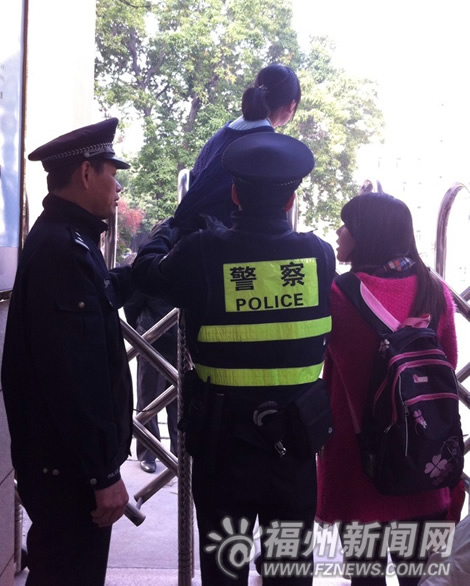福州一女生考研迟到欲翻门入场 被保安和民警拦下