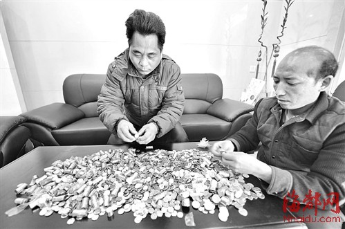 东南网1月18日讯(海峡都市报记者 江方方/文 林丹/图 实习生 林国洪)讨薪两个月,终于收到钱了,但却是一麻袋零票和硬币。收还是不收?陈先生两兄弟最终还是收下了。昨天上午,他俩提着这一麻袋的工钱,四处寻银行存钱,却一路碰壁。 陈先生说,这钱是前一天晚上拿到的,本不想要,但担心这一袋零钱不要的话,钱就讨不回来了。 “因为太气愤,还报警了。”陈先生说,民警来了,但也说没办法,让他去银行碰碰运气,能存就存。 和陈先生担心的一样,一大早,兄弟俩提着这一袋硬币,到福州市区各个银行去存钱,各家银行都以过年期间业务繁忙为由婉拒。最后,大约10点,秀峰路一家银行愿意受理这项业务。“银行的两个工作人员加上我们兄弟,点了两个多小时了,还没点完。”陈先生气愤地说,这不是故意整人吗? 据陈先生介绍,去年8、9月两个月,他们兄弟受雇鹏程装修公司,承包水电方面的装修工作。陈先生说,按照合同规定,每个月要按照工程进度的60%结算工钱,而且承诺到当年10月20日全部结清。但到了规定的日期,工头并没有给一分钱。 陈先生说,自己的装修队有6个人,眼看就要过年了,工人们要拿钱回家过年,工资都是自己先垫付的。但自己一向工头要钱,工头就显得很不耐烦,这四个月里,工头陆陆续续往银行账户上打钱,每次几千到一万元。“最后还剩下一笔6000多元的尾款,一直没讨到。”陈先生说,自己是四川人,火车票已经订好了,要拿着这钱回家过年,就担心对方不给钱。 昨天,记者联系了工头曾先生。对方确认,是给了陈先生兄弟俩一袋零钱。“硬币大约一千多元吧,还有五元十元的,一百元的也有。”曾先生说,自己也是向别人借的钱,别人就是给这个钱。曾先生告诉记者,陈先生兄弟在做工时一直没有完成自己所要求的工程进度,和自己理解的工程进度标准也不一样,但这与给这样的零钱毫无关系。 昨日,鹏程装修公司项目经理王先生表示,陈先生受雇的工头是他们公司的班组外包的,并不属于他们公司。公司将工钱发给班组,再由班组分配。 |