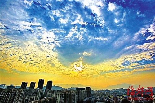 昨天下午,榕城上空的云彩变幻出“鲲鹏展翅” 东南网1月21日讯(海峡都市报记者 蔡镇金/文 包华/图)昨日,榕城雾霾逐渐消散,天空也不再灰蒙蒙,太阳轮廓清晰可见,并将云彩染成各种颜色。昨日下午4时30分许记者看到,西边的云彩变化多端,被镶上了一层金黄色,变幻出“鲲鹏展翅”,真是美轮美奂。 |