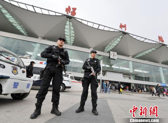 福州铁路特警持枪执勤