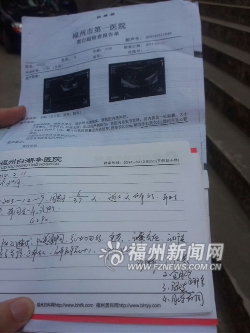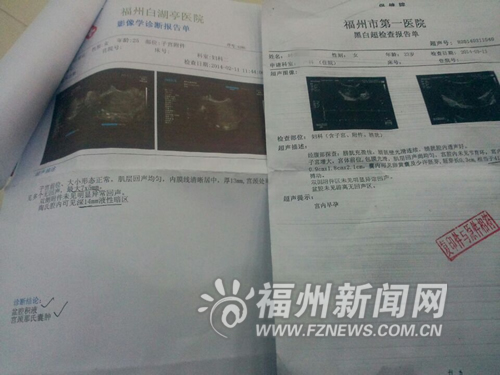 后一份检查显示叶女士已怀孕41天左右 福州新闻网讯 一个月前检查时还没怀孕,一个月后检查却怀孕了41天,这是怎么回事?近日,市民陈先生拨打本报新闻热线968800反映,他的妻子因例假推迟前往医院检查,但在白湖亭医院和市一医院检查时出现了两种不同结果。 市民质疑: 为何两次检查结果不同? 2月11日,因为2个月没有来例假,陈先生的妻子叶女士前往白湖亭医院进行检查。当时,院方的检查结果是叶女士没有怀孕,B超诊断结论为盆腔积液与宫颈纳氏囊肿。 “医生说我老婆是月经不调,开了一些药物还做了红光治疗。”陈先生说,由于此后妻子的例假还是没有来,他在3月11日又带妻子前往市一医院检查,而这一次的结果让他大吃一惊。“B超检查说我老婆已经怀孕了,而且胎儿已经有41天大小,2月只有28天,那就是说我老婆是在1月底就怀孕了。” 一个月前还未怀孕,一个月后却已怀孕41天,这让陈先生感到非常不解。他认为,白湖亭医院可能存在误诊,而且他还担心先前妻子服用的药物和接受的红光治疗会对胎儿造成影响,于是多次前往医院协商此事,但院方一直不能给他一个满意的答复。 |