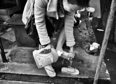硫酸厂宿舍,居民们必须趟水出门 居民设路障“拦到了”鼓山镇领导 上午九点多,这一段的东三环路突然堵住了。没有车祸,没有事故,司机却一个个往回掉头,“过不去,快掉头吧。”往前赶几步,记者发现聚集了三五十个人,有人说,住的地方被淹了,所以在这儿设路障。“等记者!等领导!非得给我们解决不可!” 有人报了警。民警后来叫来了鼓山镇领导,一名陈姓书记来到现场,在通往宿舍区的小道前停住了脚步——再往前走一步,就是齐膝深的积水了。 居民层层围上来,七嘴八舌提及逢雨必被淹的难处,书记掏出手机拍下现场积水的场面。有依姆嘟囔了句,“光说没用!得让书记进去看看!”一把拽下自己脚上的雨靴。“不不不!您快穿上。”似乎没想到会有这一幕,书记有些慌乱。有两名强壮居民找来一张躺椅,笑嘻嘻抬到书记面前,邀请他坐上去。人群中引来一阵善意哄笑,书记显得有些尴尬。 后来,有人找来一辆脚踏三轮车,用蛇皮袋垫了又垫,邀书记坐上。在人群爆发的掌声中,书记坐上三轮车,进了宿舍楼,并挨户查看了一楼受灾宿舍…… 周边城市建设破坏宿舍区排水系统 宿舍区内墙面上张贴着各种文件,尤其受居民重视的,是一份“福州市人民政府办公厅文件呈批单”。有居民介绍,近几年来,该宿舍楼区内积水的情况越来越严重,大家都迫不及待希望被征迁,这份文件,就是关于尽快启动硫酸厂宿舍区收储改造的紧急报告,希望能够被征收。3月27日,主管城建的林瑞良副市长曾在上面做出批示,要求晋安区政府前头,城乡建总配合,研究方案。 然而昨日在晋安区人民政府,分管城建的林姓副区长表示,房屋征收需要征收主体,硫酸厂属于福州市管理,是独立的,应该由其上级部门来进行这项工作。“他的上级部门并不归我们管,要到市政府或到硫酸厂的上级部门。” 鼓山镇前往现场解决积水问题的分管刘姓副镇长对此也很苦恼,他表示,由于硫酸厂宿舍周围的城市建设,已经将原本的排水系统破坏殆尽,眼下唯有拆迁,才能在根本上解决问题。 一夜雨“Hold”不住的何止一处