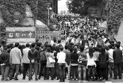 考试结束,考生陆续走出考场,等待的家长在校门口排成排 □东快记者齐榕/文 刘兴/图 昨日,福州三中、福州八中、福州高级中学自主招生笔试同日开考。都教授、李敏镐、辽宁号、内地女童香港便溺事件以及今天母亲节等时下最流行的事件及语言出现在了卷面上,从各校的自主招生题目来看,福州自主招生考试也变得愈发“身段灵活”起来。 今日,另一所自主招生的普高——福建师大附中也将开考。 福三中 都教授、李敏镐入题 考试像抢答 学生直呼过瘾 据悉,福州三中此前共有376人通过了初审获得自主招生考试资格,另外有4人通过面试被提前录取。 从语文题来看,题型和中考题型相当,包含了语基、选择填空等,考试的内容也涉及《水浒》等日常的名著阅读。说到今年的作文则体现了学生对热点事件理解评述能力的考查。作文题要求学生针对前一段的热点内地女童香港便溺事件发表自己的观点和看法。要求考生写一段文字,字数在400字,文体不限。据介绍,这道题考查学生的思辨能力。 不过,三中的英语作文题虽然是紧扣母亲节的热点和时效,却和福州高级中学的作文题撞题啦!三中的英语作文题为母亲节马上就要来了,一家英语杂志社正在做一份调查,列出不同国家的孩子在母亲节给妈妈送什么礼物。让考生根据表中的信息并结合自身情况,给杂志社写一封信,并谈谈对母亲的感恩之情及祝福。这样的题目既考查了学生的写作能力,又紧扣热点。 和往年相比,三中独特的综合能力测试题也让学生直呼过瘾,有点像限时抢答。据了解,综合能力测试总体量是50题,要求学生在30分钟内做完,平均每半分钟做完一道题。校方表示,综合能力测试包含学生人文素养、科学素养和智商等几个方面的内容,考试范围更加新颖灵活、也更有区分度,考查的方式也更多。不过,今年的图形智商题减少到4道题。 在今年的综合能力测试题中,考查的方式也更加多元化和创新性。例如,一道题目为,热播剧《神探夏洛克》取材于英国侦探小说,该小说的主人公是谁?这道题考的是文学类的知识。 值得一提的是,韩剧当红演员李敏镐和热播韩剧都教授也走进三中自主招生的能力测试题。比如一道题中,列出一些做法,让学生谈全球化为各国带来多元文化的理解,其中,就提到了某综艺节目邀请“都教授”作为嘉宾、某企业邀请韩星李敏镐为其产品代言等做法。 此前三中在自主招生细则中规定,初中阶段获福建省级以上(含省级)数学、信息学科竞赛一等奖者;初中阶段获VEX机器人省级竞赛一等奖以上者在审核后可直接通过面试提前录取。今年的面试包含面谈和动手环节。和去年一样,在今年三中自主招生选拔中,有4名学生非常幸运,免于笔试直接通过面试进入预录取名单。3名信息学获奖学生则是直接以面谈的方式进行面试,校方表示通过面试的这3名学生数学、信息思维反应灵敏,而且能够有创意性地做答。 据悉,昨日福州三中已经开始进入阅卷状态,考试成绩和录取结果将于14日公布,考生可通过考试报名系统查询自己的成绩和结果。13日,三中将列出初步拟录取的人员名单,如果名单中有同时通过附中自主招生考试的学生,将由福州市中招办出面征求考生意见,并最终由学生自己选择志愿。 |