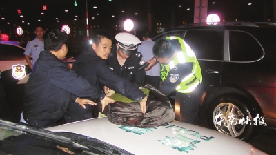 蔡某在厦门同安出口被抓,穿反光背心的警察后面的车就是肇事的豪车 □东快记者翟星理通讯员董显玲 5月9日晚,渔平高速路段B道23公里处,一辆棕色豪车停在应急车道上。 例行巡逻的福州高速公路支队民警发现后,正准备敲车门检查,突然一女子夺门而逃,大喊着“救命”,并朝警车跑去,而豪车则左摇右晃地向前方加速驶去。 由此,警车与豪车展开了一场历时4个小时、长达250多公里的高速公路跟踪追逐大战。 福州 咬伤妻子,驾车走“猫步” 当晚8点30分左右,高速民警袁海涛带着协警在平潭往渔溪方向巡逻,发现一部豪车停在应急车道上。袁海涛停车上前,正要检查,突然从车上跑下一名女子,喊着“救命”并冲向警车。 民警截住了女子,询问后得知该女子方某系福州人,当时她与老公蔡某正打算驾车回福州,没想到蔡某突然毒瘾发作,在应急车道上停车吸毒后对方某又打又咬,把她的右肩咬出一大块血印。不堪暴力袭击,她只好逃离。 民警听罢,迅速靠前要求蔡某下车。孰料,蔡某不予理会,还启动车辆,摇摇晃晃地加速驶离了现场。民警立刻驱车跟进,同时向中队领导和支队指挥中心报告此事。 无视警告,从两车夹缝中逃离 接到报告之后,福州高速交警支队一大队平潭中队快速反应,派出一辆警车驱车增援。福州兄弟中队也迅速派出两辆警车支援,一辆警车安排在嫌疑车辆可能驶离高速的渔溪收费站口设卡堵截,另一辆警车在沈海高速上协助拦截。 期间,袁海涛驾驶着警车一边向豪车逼近,一边喊话强令该车靠边停车。 起先,豪车车速还比较慢。增援警力赶到后,两辆警车试图夹击围堵将其逼停,但蔡某无视警告喊话,硬生生地从两车之间仅有的一车之宽的夹缝闯了出去。 而到达了渔平高速渔溪高架互通时,蔡某突然加大油门,向着厦门方向狂飙而去。 |