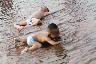 @东南快报:近期福州连续大雨,看海让人郁闷,看溪却让人愉悦。前天下午,经过一场阵雨洗礼的福州东江滨花海公园的木栈道上,弥漫了浅浅的水。一些前去看花的小朋友,干脆脱掉衣服,只穿着小内裤,高兴地在水里玩耍。看着这些趣妙横生的孩童图,你是不是也心动了? 在水里打滚,过泼水节,拖拽别的小朋友的小内裤,孩子们咯咯的笑声感染了岸上的大人们。很多大人也挽起裤脚纷纷下水,感慨仿佛回到了小时候在乡村的小溪边玩水的场景。 起先玩水的只有两三个小男孩,后来越来越多的孩子吵着要下水,起初大人们还担心水脏不让下水玩,但经不住孩子们一直哀求就答应了。很快木栈道上就有十多个孩子加入到玩水的队伍里。几个妈妈说,玩完了赶紧回家洗澡,应该不会生病。 孩子们在水里扑腾了一两个小时,太阳都快落山了,还依依不舍不肯回家。一个小姑娘站在水里哭着不肯离去,硬是让妈妈拽上了岸边。 东快记者孔丽 |
