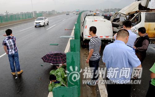福州螺洲大桥上环卫工保洁遭横祸 被货车撞飞(图)