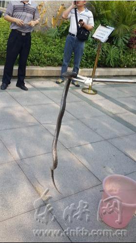 温泉公园附近跑来1米多长眼镜蛇 保安用扫帚抓获