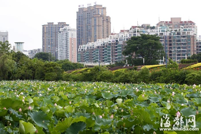 这片荷塘毗邻市区,景色优美