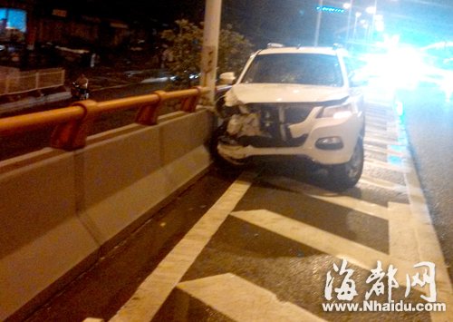 逃逸近10公里后,肇事车撞到路边,车头破损,被迫停车