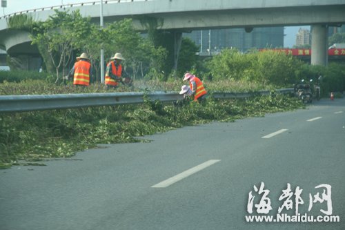 福州西三环绿化带灌木遭“腰斩” 威胁行车安全